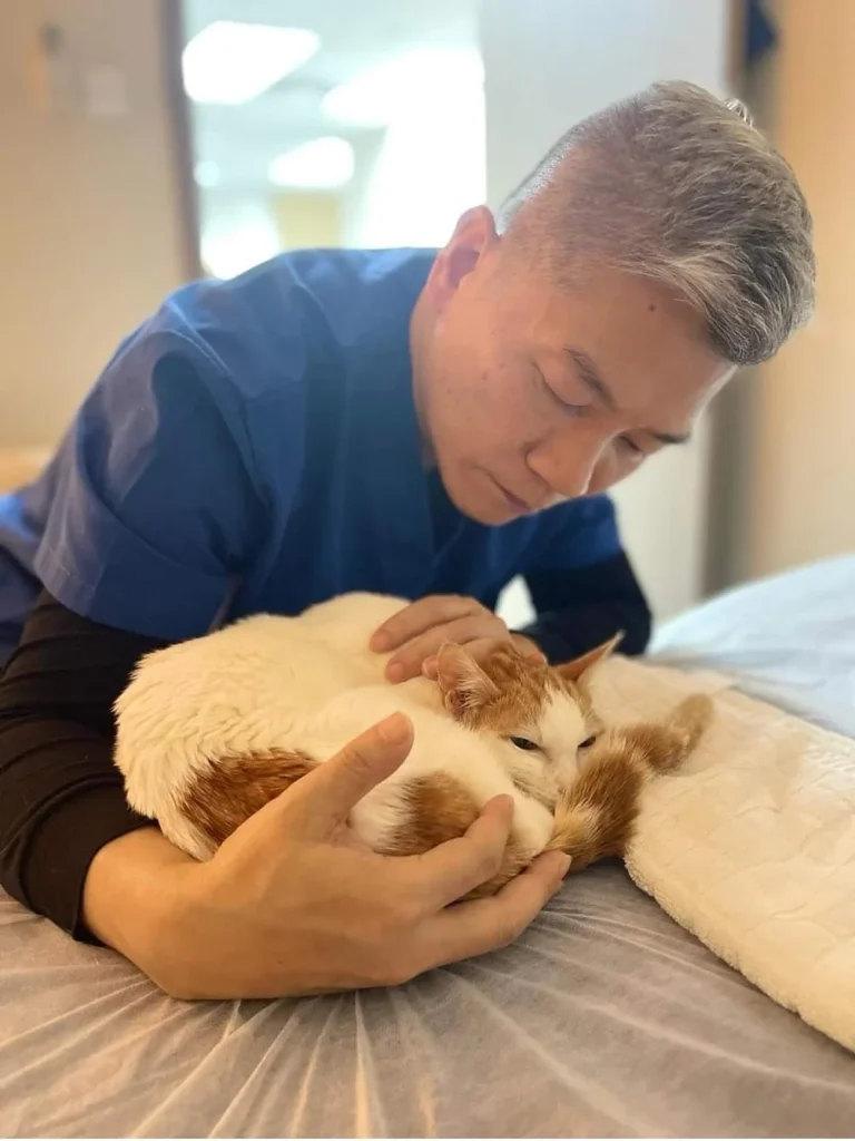 所以6天後再做第二次治療。一向怕陌生人的BB,很接受Uncle buck 的治療。